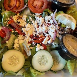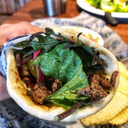 4.5 stars Cozy place inside - almost feels like a little seafood grill on the docks. Anyway, lamb burger was outstanding, and the feta wasn't overpowering, which I feel is a problem with a lot of Mediterranean places. You can also tell the bun is good-quality by the cracks on top. The potatoes weren't anything special though; get a different side. Food came out quickly, even with a big group.