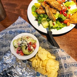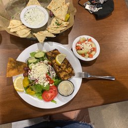 This was a great place to stop for lunch. We knew nothing about it but we know we like Mediterranean/Greek food so we thought we would give it a shot. It's similar to Mr. Gyro's in Kansas City, which I love and is near where I live. This place has an even bigger menu. Just today they had introduced a new Lamb Burger with whipped feta, so that's what I got. I think it may be the first Lamb Burger I've ever had- it definitely tastes different than any other kind of traditional burger meat I have had. It came with a side of potato chips and then you got to choose another side. I chose red potatoes, which were delicious and perfectly cooked. I kind of wish we could choose both sides because I would've gotten potatoes and either fruit or a small salad- both were available. My friend got the pick your own plate with Caesar salad, salmon, and a side of red potatoes. She absolutely raved about everything. We also got white chocolate lemon cookies for dessert and they were insanely good. The gentleman who welcomed us in so warmly also helped us at the register. His name was Alex and he was amazing. He knew it was our first time so he explained the menu to us and told us about some things that customers really love . And since it was our first time he gave us free fountain drinks! We thought that was really sweet of him. I hope one of these comes to KC. We will definitely be back next time we're in this part of Denver.